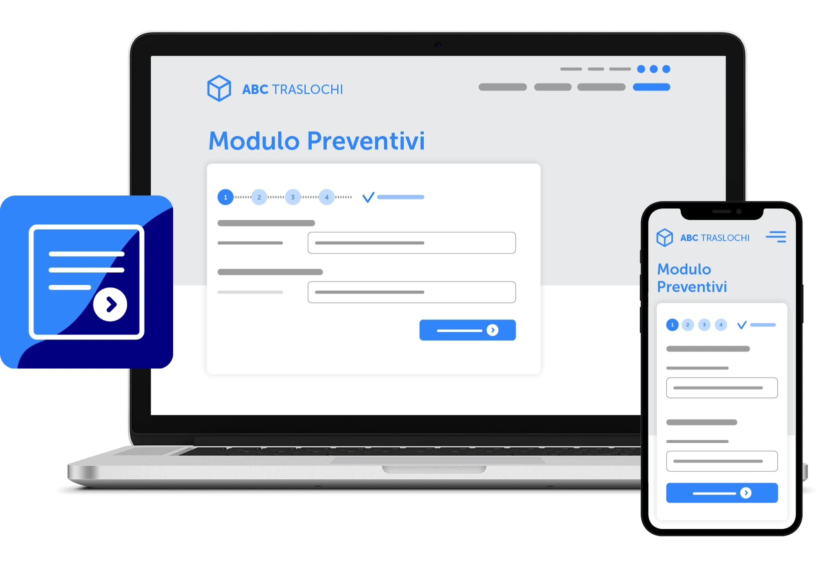 Grazie ai nostri 18 anni di esperienza nel mettere in contatto i traslocatori con i consumatori, comprendiamo la prospettiva del cliente quando effettua una ricerca online. Grazie a questa conoscenza abbiamo creato una serie di prodotti progettati per portare il sito web della tua azienda a un livello superiore. Inserite il nostro Modulo Preventivi, il calcolatore di volume o lo Stimatore di Prezzo sul tuo sito web per incrementare le prenotazioni a una frazione del costo necessario per costruirli da soli!